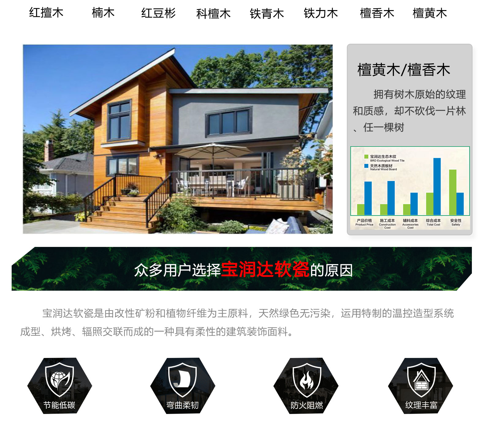 寶潤達外墻軟瓷磚:具有安全環(huán)保、抗震防裂、耐火防凍、拒水透氣、耐酸耐堿等優(yōu)良特性,表現(xiàn)力豐富,是良好的室內(nèi)外建筑飾面材料